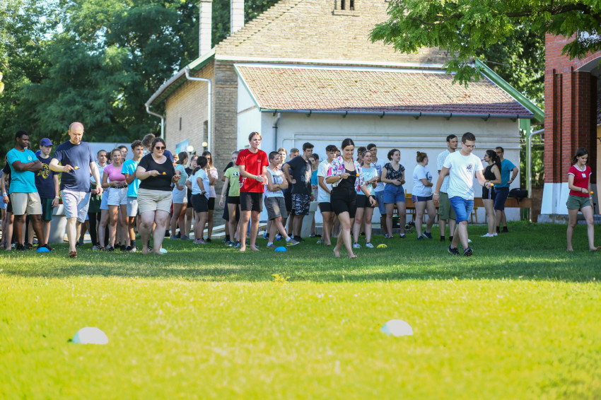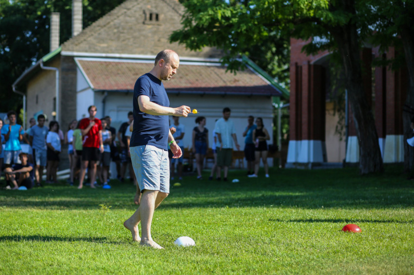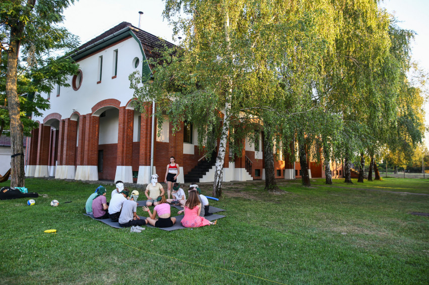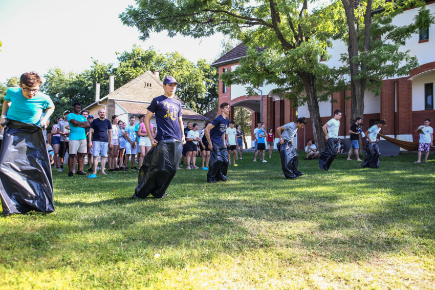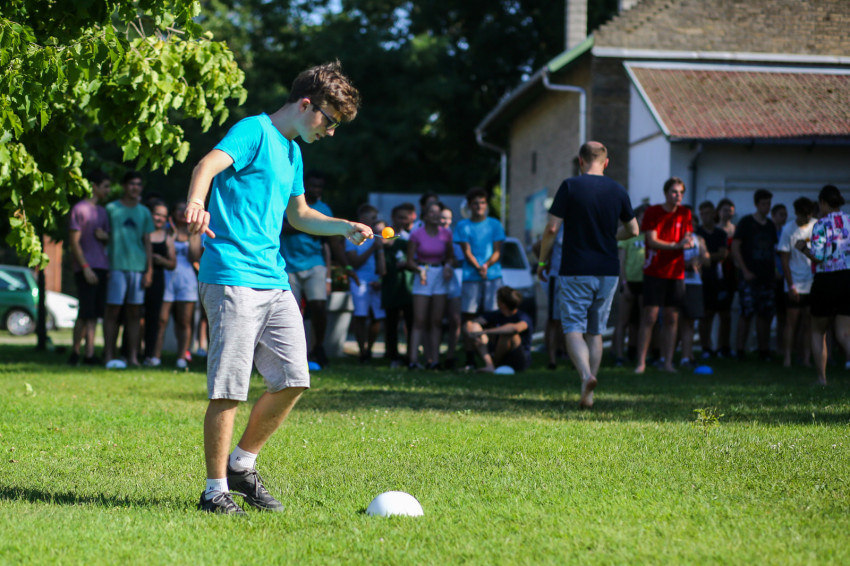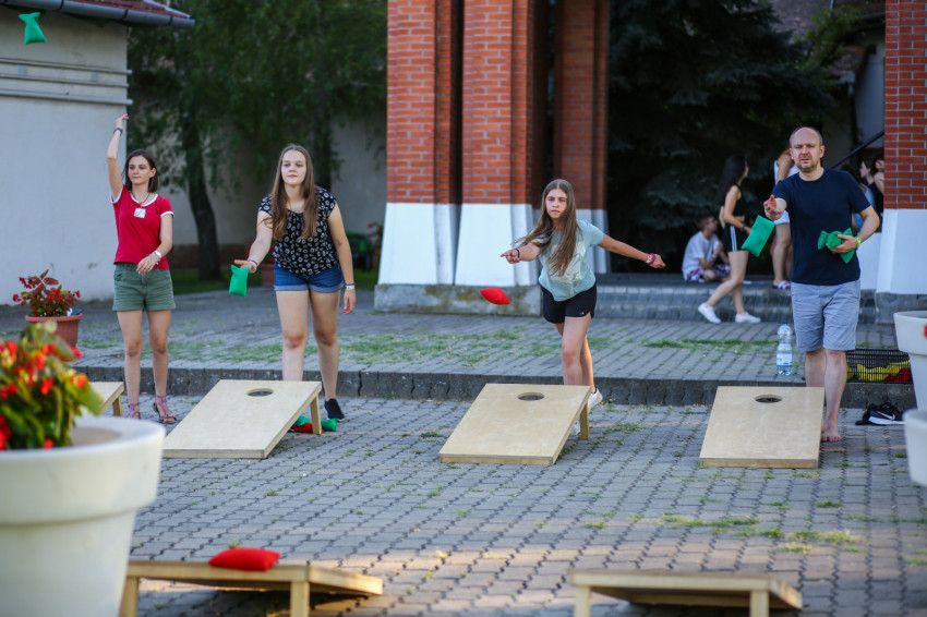Az épület melletti röplabdahálónál folyamatos a játék, hátul focimérkőzés zajlik. A térköves részen felállították a Corn hole-t, az Amerikában megismert, és itt elkészített dobójátékot. A fák alatt, az épület lépcsőin kisebb-nagyobb csoportok beszélgetnek, kártyáznak. Telefont senkinél sem látunk. A szervezők eleve kérik, ne hozzanak magukkal elektronikus eszközt a fiatalok, akik hozzátartozóikkal este hat és hét óra között tudnak telefonálni.