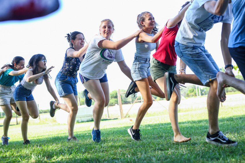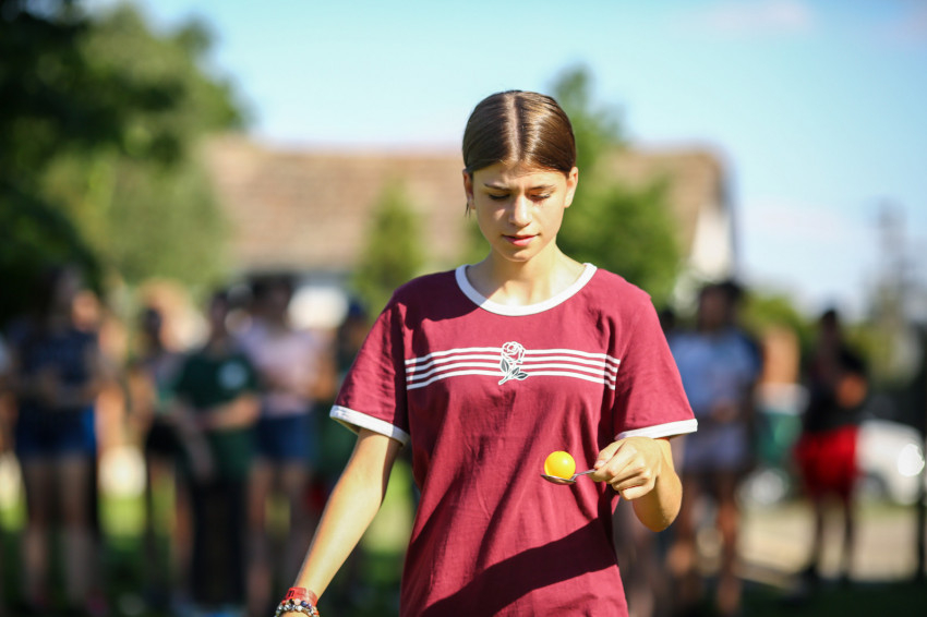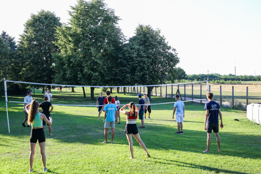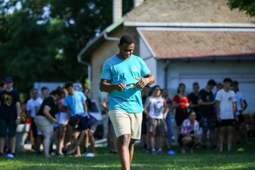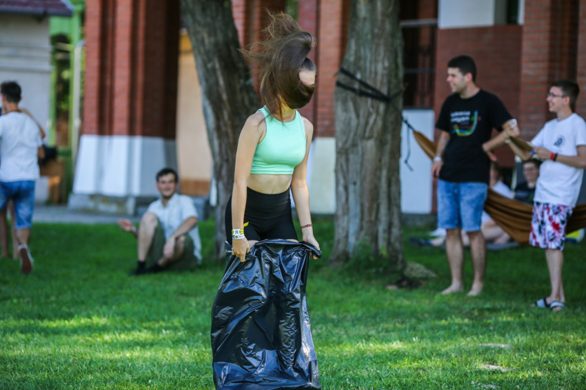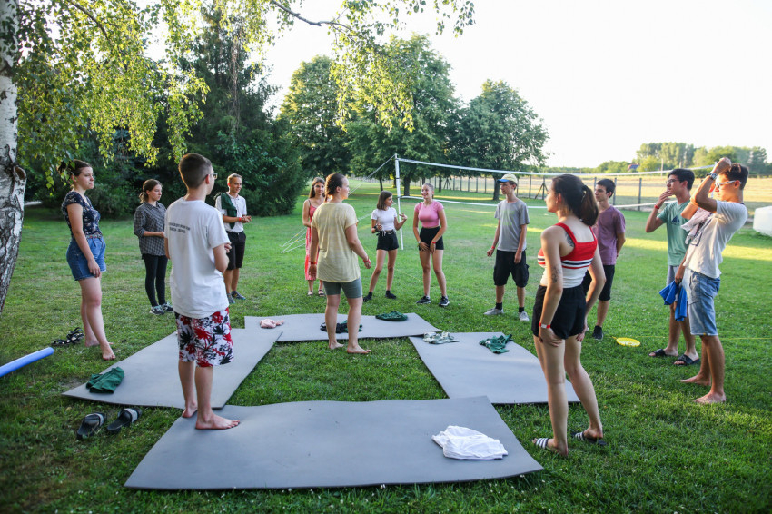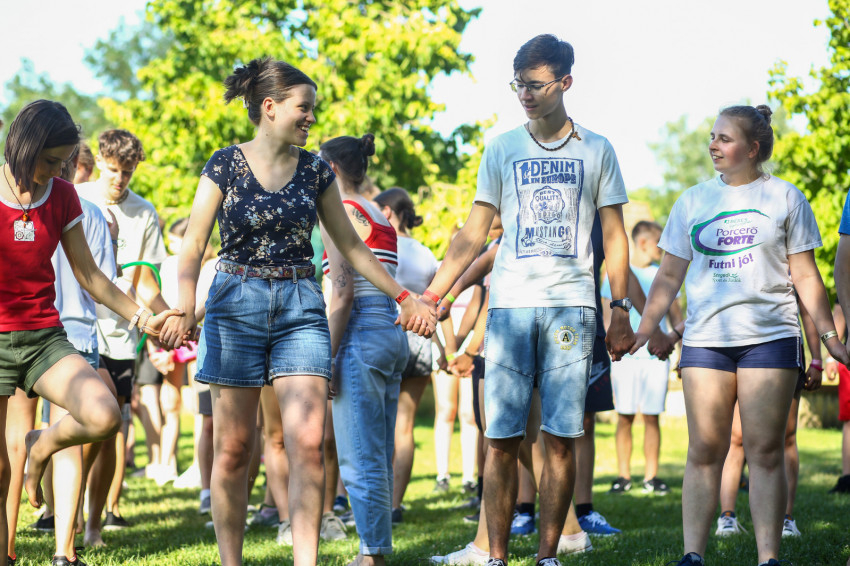 Az épület melletti röplabdahálónál folyamatos a játék, hátul focimérkőzés zajlik. A térköves részen felállították a Corn hole-t, az Amerikában megismert, és itt elkészített dobójátékot. A fák alatt, az épület lépcsőin kisebb-nagyobb csoportok beszélgetnek, kártyáznak. Telefont senkinél sem látunk. A szervezők eleve kérik, ne hozzanak magukkal elektronikus eszközt a fiatalok, akik hozzátartozóikkal este hat és hét óra között tudnak telefonálni.
