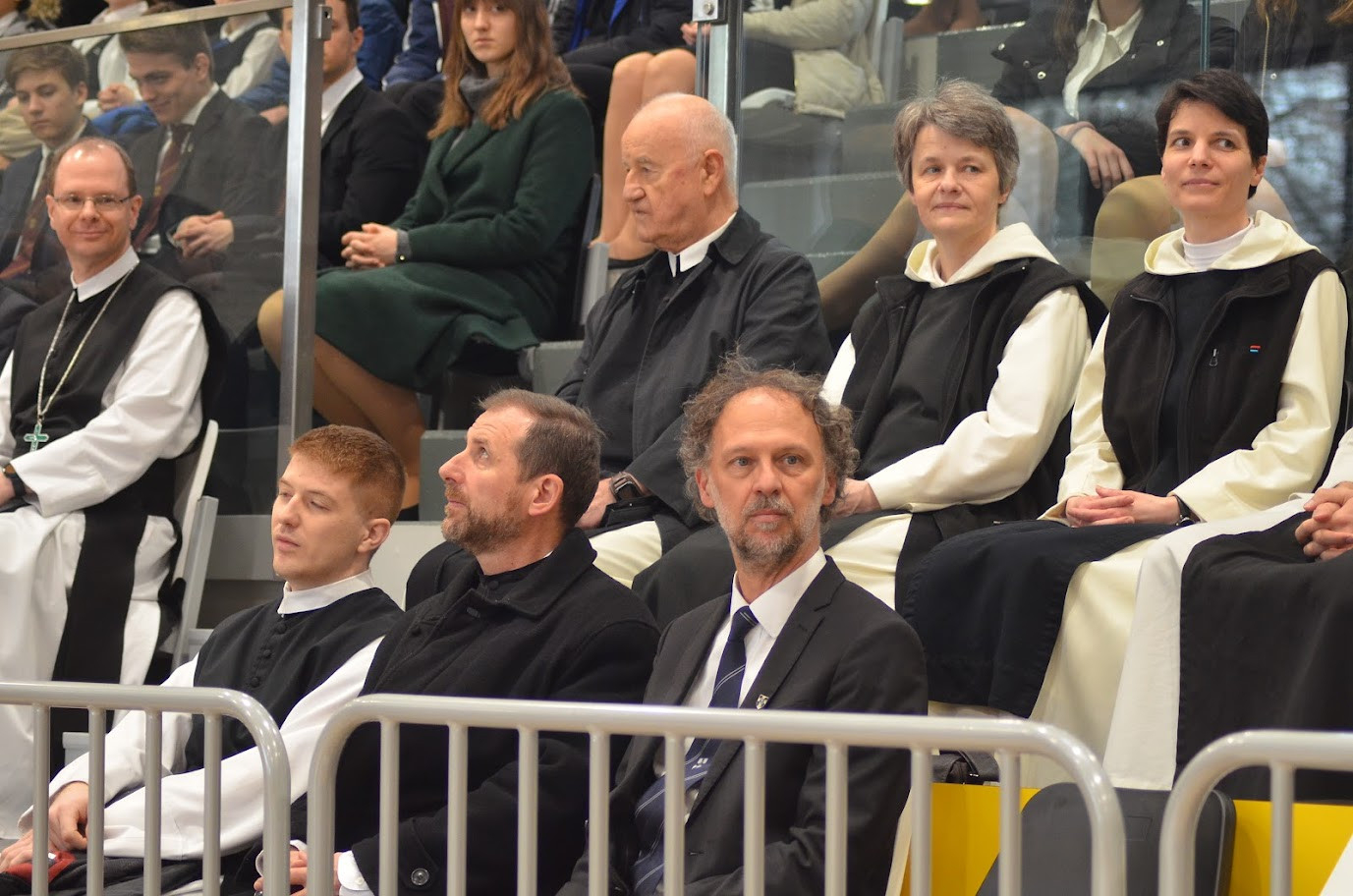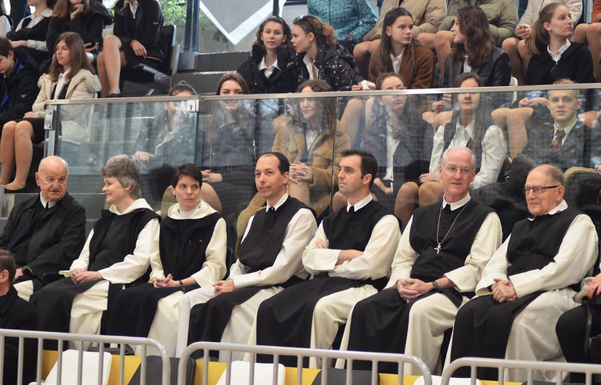 A vendégeket házigazdaként Bérczi L. Bernát O.Cist. zirci apát fogadta. A magyar kormány részéről Gulyás Gergely Miniszterelnökséget vezető miniszter, Fürjes Zoltán egyházi kapcsolatokért felelős helyettes államtitkár, a helyi közélet képviseletében pedig Németh Zsolt és Simicskó István országgyűlési képviselők jelentek meg. Jelen voltak a kivitelezést konzorciumban végző Possibuild Kft. és Horváth Építőmester Zrt. vezetői és munkatársaik, a Zirci Ciszterci Apátság projektet irányító munkatársai, az egri, pécsi és székesfehérvári gimnáziumok vezetői, valamint a Budai Ciszterci Szent Imre Gimnázium vezetői, tanárai és a diákság képviselői. Az apát külön köszöntötte a Dallasi Miasszonyunk Ciszterci Apátság apátját és két szerzetestársát, valamint a kismarosi ciszterci nővérek képviselőit és a zirci apátság szerzeteseit.