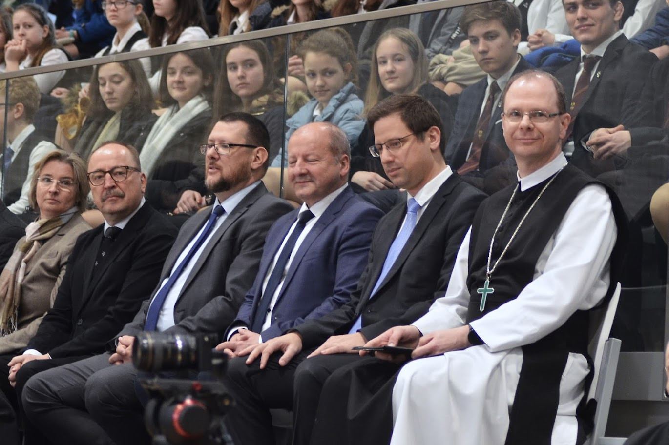 Az avató ünnepség zárásaként a meghívott vendégek átvágták a nemzeti színű szalagot a Szent Bernát-szobor előtt. Az iskola közel 900 tanulója és száz fős alkalmazotti köre boldogan vette birtokba az új és megújított épületrészeket: a hétvégét követő első tanítási napon már az új sportcsarnokban csengethettek be a testnevelés órákra.