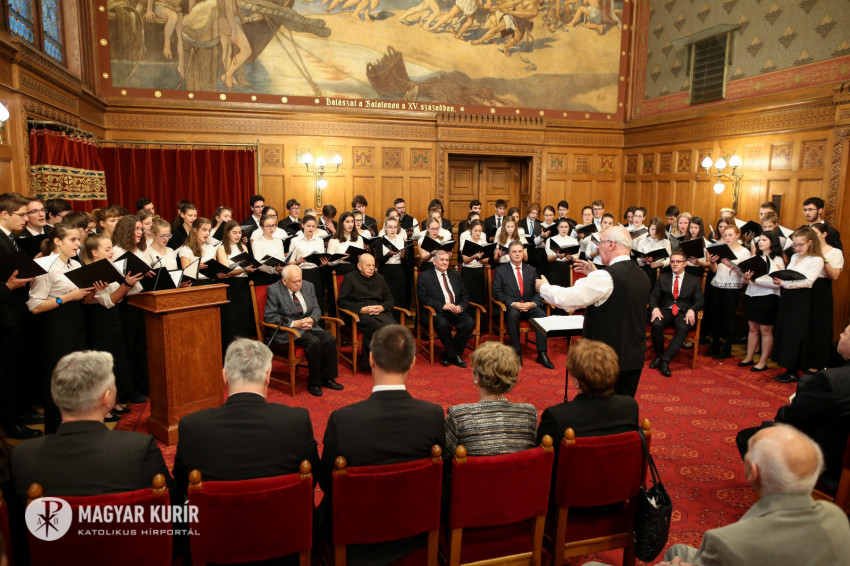 A Parlament Vadásztermében az emlékérmek átadását a Kodály Zoltán Kórusiskola diákjainak éneke vezette be Sapszon Ferenc karnagy vezényletével. Elhangzott a Mindszenty-ének – amelynek szerzője Varga László és Sapszon Ferenc –, valamint Bárdos Lajos és Dienes Valéria Világnak királyné asszonya… kezdetű kórusműve.