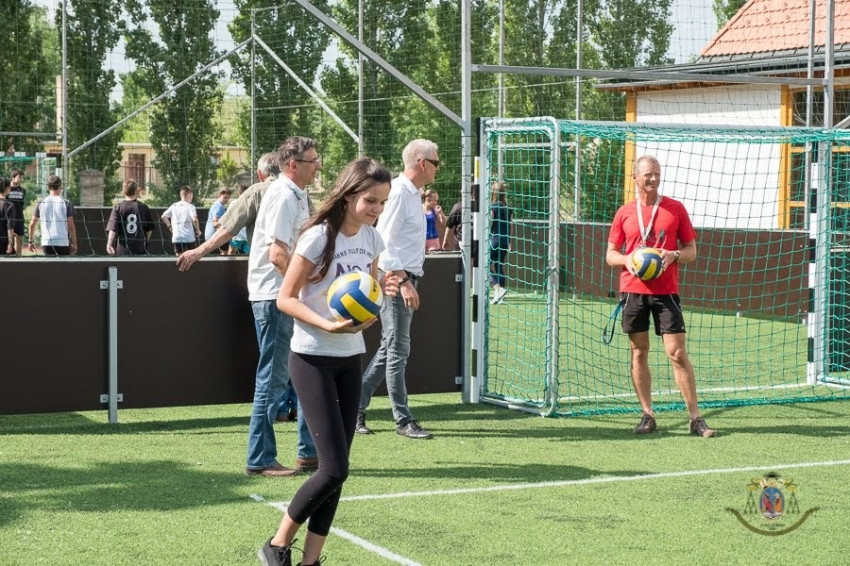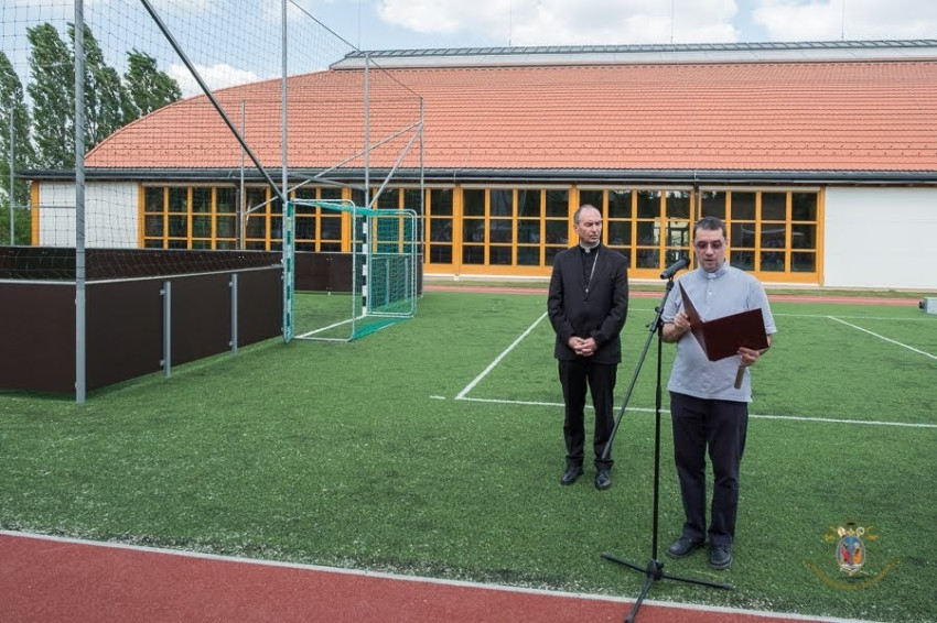 Appelshoffer Ágnes, a város polgármestere emlékeztetett, hogy az iskolának 2007-ben épült tornacsarnoka, azonban a szabadtéri testnevelés feltételei továbbra sem voltak megfelelőek a gimnazisták számára. 2016-ban az iskola új fenntartója, a Pécsi Egyházmegye új sportpálya építését határozta el.