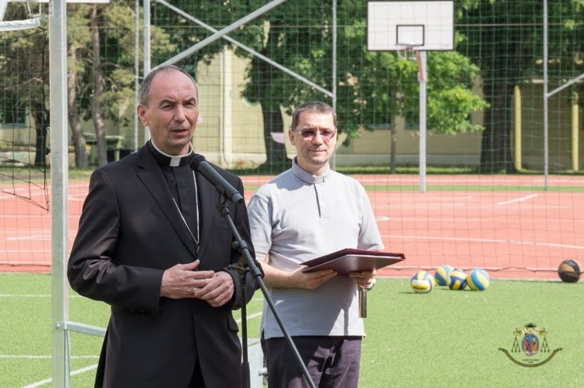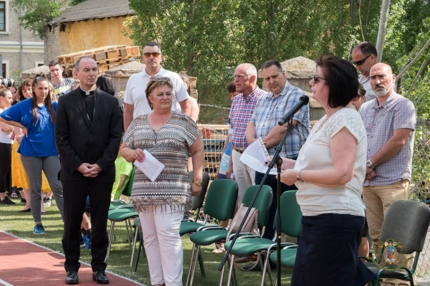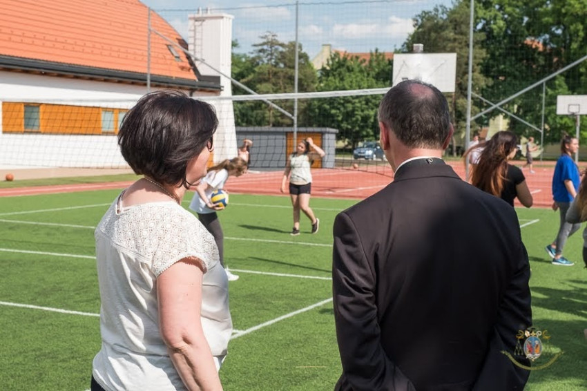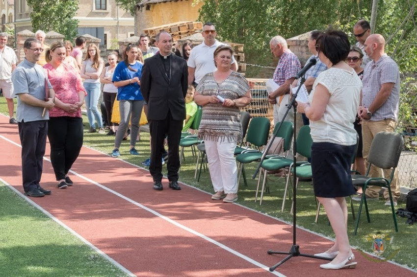 Udvardy György pécsi megyéspüspök a sportpálya megáldása előtt elmondta, a város és a fenntartó együttműködésének köszönhetően olyan közös létesítmény jöhetett létre, amely mind a diákoknak, mind a város lakóinak örömére szolgál. „Oktatási intézményeinkben az egész embert akarjuk nevelni: testével, szellemével, vágyaival, kapcsolataival együtt, és ehhez elengedhetetlenül hozzátartozik a testi nevelés is. A sport által jobban megismerjük önmagunkat, erőfeszítéseinknek köszönhetően olyan eredményt érünk el, amelyről korábban nem is gondoltuk, hogy képesek vagyunk rá. Ez a tapasztalat erőt ad a későbbiekre is: helyt tudok állni, képes vagyok rá, tudok küzdeni magamért, tudok küzdeni másokért” – fogalmazott a főpásztor.