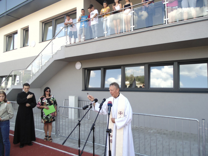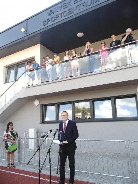 A sportcentrum átadásakor Beer Miklós nyugalmazott megyéspüspök vágta át a nemzeti színű szalagot és áldotta meg a létesítményt. Beszédében így fogalmazott: „Megilletődve lehetünk ma itt mindannyian, midőn száz esztendő múltját idézzük fel. Ennek a sportcentrumnak mostantól kezdve Vanyek Béla ad nevet. A kedves váci kanonok fontosnak tartotta, hogy azokban a nehéz időkben reménységet adjon népünknek, a fiataloknak. Az ő álma talán most teljesedik be igazán. Az elmúlt években nagyon sokan voltunk itt Vácott, akik drukkoltunk, reménykedtünk, hogy megvalósul ez az álom, hogy itt egy ilyen nagyszerű létesítmény létesül. Nagyon sok reménységgel tekintek a fiatalokra, cserkészeinkre, a sportolókra, hogy folytatni fogják azt a nagyszerű hagyományt, ami a VRE történetét jelenti.”