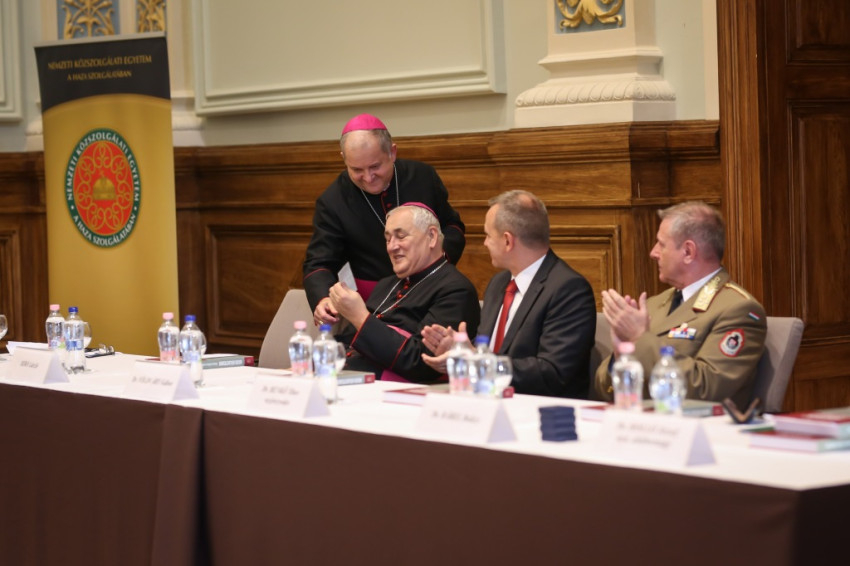 A szentmisét követően a Ludovika-főépület dísztermében került sor a Közös küldetésben – Katona és lelkész az ember és a nemzet szolgálatában című kötet bemutatójára. Bevezető gondolataiban Berta Tibor a Tábori Püspökség nevében köszönte meg a kötetben tanulmányt író szerzők munkáját, majd Bábel Balázs köszöntötte a könyvbemutató résztvevőit, köztük Boross Péter volt miniszterelnököt. Az érsek kifejtette: a könyv hiánypótló alkotás, mivel magyar nyelven még nem jelent meg hasonló munka. Földváry Gábor helyettes államtitkár Simicskó István honvédelmi miniszter köszöntését tolmácsolta, és reményét fejezte ki, hogy a könyv az ifjabb generációk érdeklődését is fel fogja kelteni.