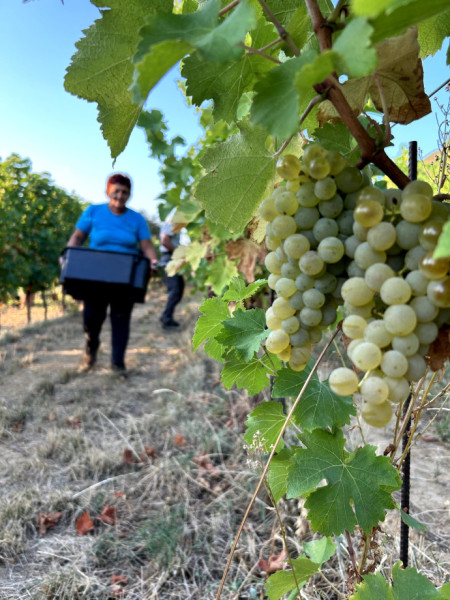 A pincészet birtokain idén is a sauvignon blanc-nal kezdődött, majd az olaszrizlinggel folytatódott a szüret. Előbbit különböző érési fázisokban szüretelik, és az első szedést követően egy napon keresztül áztatják. A bogyókat ilyenkor nem roppantják meg, a hideg áztatás hatására pedig jobban kijönnek az aromák – ennek köszönhetőek azok a zöld, frissítő ízjegyek, amelyekben sokszor a csalán, a bodza, az egres és a zöld tea aromája is érezhető.