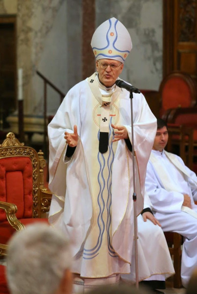 Homíliájában arról beszélt, hogy az elhangzott evangéliumi rész – mely az elpusztult Jeruzsálem és a világ végének perspektívájába állítja a híveket – elgondolkodtat mindenkit az időről. Az idő nem értelmetlen folyamat számunkra, hanem Isten üdvözítő tervének az ideje, folyamat, melynek kezdete és célja van. A cél Krisztus. Figyelmeztet arra is, hogy a történelem útján járó Egyház sokszor – napjainkban is – sokfelé üldöztetésnek van kitéve.