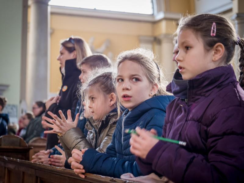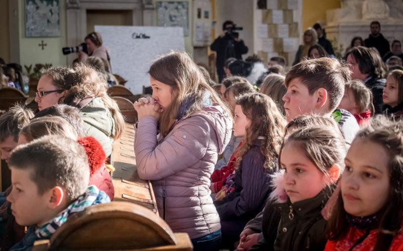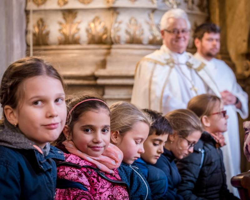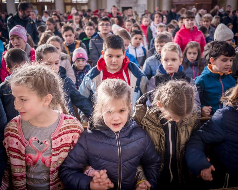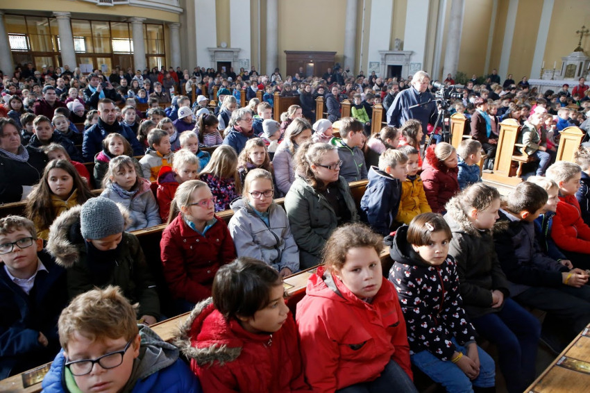 A mi életünknek is legnagyobb eseménye, hogy szentáldozáshoz járulhatunk, hogy Jézust befogadhatjuk a szívünkbe, és vele együtt járhatjuk utunkat. Nektek egészen különleges élményben lesz részetek, hogy az első találkozásotok az Oltáriszentséggel csodálatos és egyedi esemény lesz az eucharisztikus kongresszuson” – hangsúlyozta a főpásztor.
