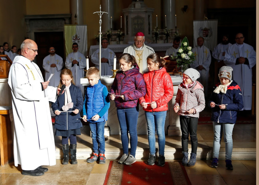 A szentmise homíliájában Spányi Antal püspök a Jézussal való találkozás titkáról beszélt a hittanosoknak, ami különleges módon valósul meg a szentáldozásban. „Az ünnepen, amire készültök, nagy titokba lesztek beavatva: Jézussal fogtok találkozni. Ő sok emberrel találkozott élete során: betegekkel, akik gyógyulást kerestek; szegényekkel, akik vigasztalásra vártak, és olyanokkal is, akik keresték az igazságot. Amikor találkoztak Jézussal, ez az esemény megváltoztatta életüket. Rátaláltak az Úrra, akinek hallották a szavát, és befogadták szeretetét. Új életet tudtak kezdeni.