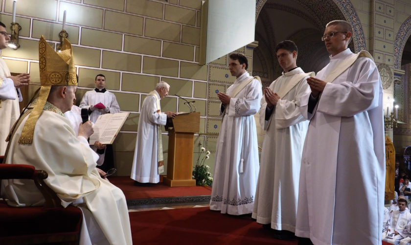 Az ünnepi szentmisére a főegyházmegye területéről és azon túlról is érkeztek nagy számban papok, rokonok, barátok és hívek, hogy együtt ünnepeljenek és imádkozzanak a szentelendőkért. Az evangélium felolvasása után kezdődött a kiválasztás szertartása, amelyben Varga István, a Boldog Gizella Szeminárium és a Veszprémi Érseki Hittudományi Főiskola rektora felterjesztette a jelölteket a szolgálatra, alkalmasnak ítélve őket a feladatra.