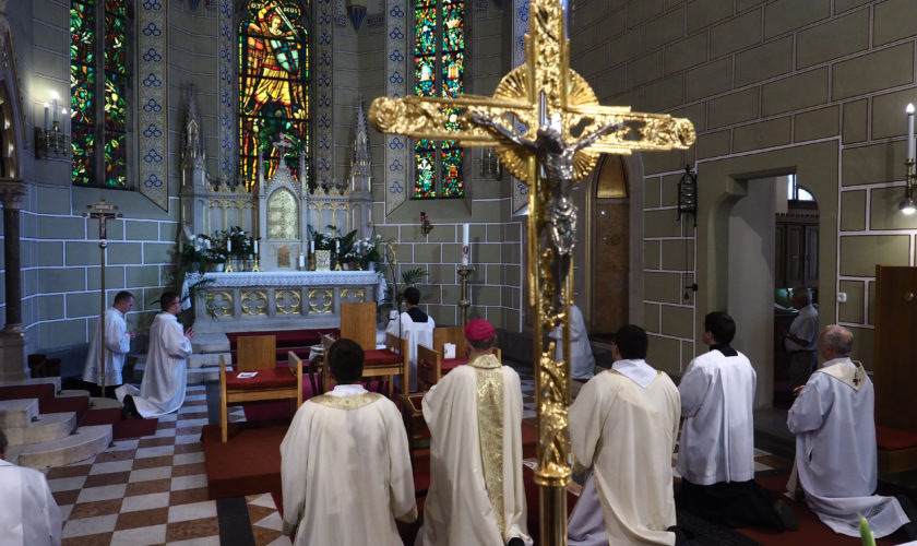 Végezetül a szentmise bemutatásáról elmondta, hogy a legnagyobb ajándéka a papságnak, hogy elmondhatják: „ez az én testem”, „ez az én vérem kelyhe”, s ezáltal a kenyér valóban átváltozik Jézus testévé, a bor átváltozik szent vérévé. Ezeket a szavakat bármennyiszer is elmondják, nagyon fontos, hogy igazi hitből fakadó áhítattal mondják ki, és minden esetben legyen ez öröm, hogy kimondhatják, hiszen Jézus kereszthalálát és feltámadását teszik jelenvalóvá, a jelen pillanat eseményévé. Így semmisül meg a kétezer év távolság, és így lesz köztük Krisztus teste és vére – hangsúlyozta a főpásztor.