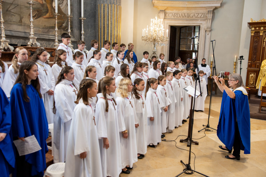 A szombati szentmise zenei szolgálatát a Váci Székesegyházi Kórusiskola látta el, Acsainé Dávid Ágnes karnagy vezényletével.