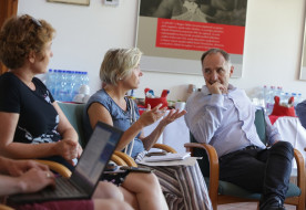 A lakás egy kis időre átalakul: mivel Góz Margit a program egyik első beköltözője, a hivatalos kulcsátadás egyben rövid sajtótájékoztató is. Erre érkezik Fülöp Attila, a Belügyminisztérium gondoskodáspolitikáért felelős államtitkára, valamint a lakásalap két ügyvezető igazgatója, Lutár Balázs és Major Gábor is.