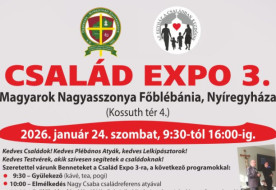 január 13. | 11:28Ismét családexpót szervez a Debrecen-Nyíregyházi EgyházmegyeA 3. Család Expót január 24-én, szombaton rendezi meg a Debrecen-Nyíregyházi Egyházmegye. A lelkipásztorokat, a családokat és a családokat segíteni kívánó testvéreket ezúttal Nyíregyházára várják.