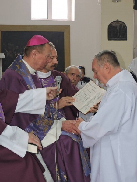 Ezután a püspök kézrátételével és felszentelő imájával, a Szentlélek által a papi rend első fokozatában részesítette, és a Szentlélek kegyelmi ajándékainak kiáradását kérte számára. A láthatatlan kegyelmek láthatóvá tétele a beöltözés mozzanataiban lett teljessé, majd Szakállas Lajos megkezdte diakónusi szolgálatát a szentmisében.