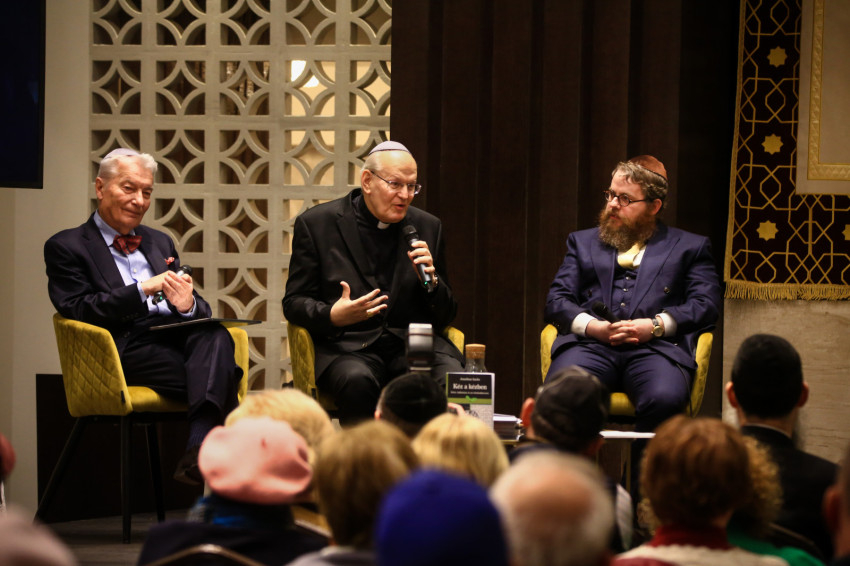 Vizi E. Szilveszter a tudomány hatalmas, exponenciális fejlődésére utalva kifejtette: az ember olyannyira megerősödött általa, hogy már-már az Isten helyébe képzeli magát. A vallás vajon ad-e elég muníciót ahhoz, hogy az ebből fakadó elsivárosodásban, bizonytalanságérzésben elérjük a boldogságot? – kérdezte. Erdő Péter bíboros azt hangsúlyozta, hogy nem a pillanatnyi jó közérzet a boldogság, hiszen ennek akadálya a másik ember, ráadásul benne van a jövőtől való félelem is. A keresztény-zsidó boldogságeszmény nem ez, hanem az örök boldogság világítja be az életünket és tölt el reménnyel. Köves Slomó hozzátette: személyesen sokat kell dolgoznunk azon, hogy a vallás erőt adjon a lét elviselhetetlen értelmetlenségében.