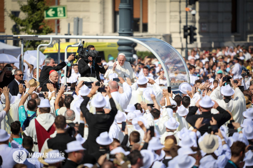 „Tu es Petrus” – a Krisztus oratórium egyházalapítást megéneklő műve kísérte Ferenc pápát, miközben a pápamobillal végighaladt az Andrássy úton és a Dózsa György úton, a szívében még a tegnapi eucharisztikus körmenet emlékével integető embertömeget üdvözölve.
