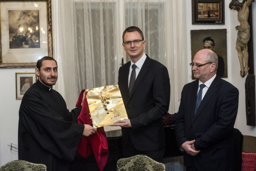 A szíriai háború mementóját Krikor Badichah, a római XIII. Leó Örmény Kollégium rektorhelyettese adta át az államtitkárnak a budapesti Örmény Katolikus Lelkészség épületében. Az eseményen jelen volt Török Tamás, az üldözött keresztények megsegítéséért felelős helyettes államtitkár is.