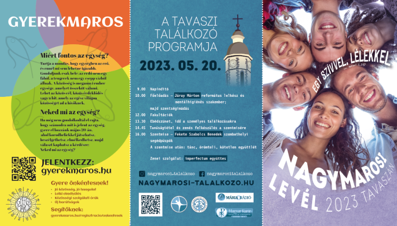 Jézus többre hív annál, mint ami nekünk kényelmes… Ettől válik ez igazi kihívássá. Figyelmünket odairányítja a teremtett világra, a társadalom kitaszítottjaira, a betegekre, a bűnösökre, az eltérő vallási hagyományhoz tartozókra. És még kikre? Ha Krisztussal egységben vagyok, akkor kikkel kell egységben lennem? Erre a kérdésre keressük a választ közösségben, május 20-án, Nagymaroson.”