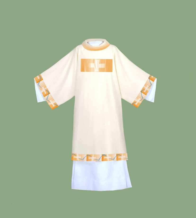 A liturgikus ruhákat a Szociális Testvérek Társaságához tartozó Fecske Orsolya szerzetesnő, festőművész tervezte, a Magyar Katolikus Püspöki Konferencia felkérésére.