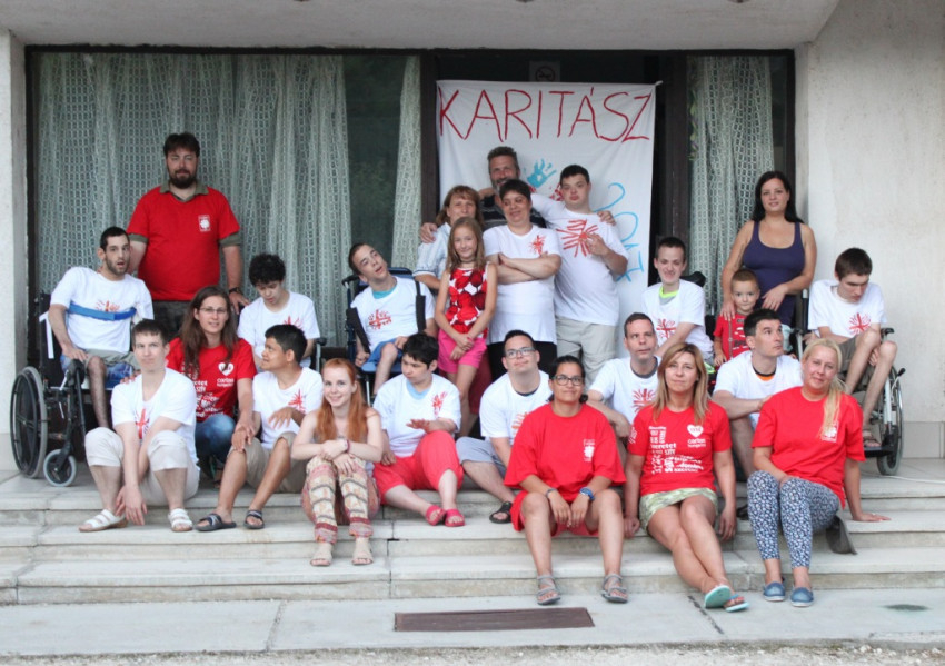 Kellemes nyári este van a Balaton partján fekvő Badacsonytomajon, melynek csendjét itt-ott megtöri a nyaralók kerti mulatsága és a strandról hazatérők vidám, élményekkel teli beszélgetése. A hegy lábánál a bazaltorgonák és a hegyvonulat csodálatos látványában lehet gyönyörködni a plébániai közösségi ház udvarán, ahol gyermekek csoportja áll össze egy képre. Nem is gyermekek igazából, hanem fogyatékkal élő fiatal felnőttek, gyermeki örömmel. Rajtuk az általuk festett fehér póló, a felnőtteken a karitász piros ruhája. Valami mégis közös bennük: az egyhetes, élménydús tábor utolsó estéjén mindannyian vidáman és örömmel fogják egymás kezét, vállát, várva, hogy a fényképezőgép megörökítse a csapatot, mindenkit, aki itt van táborozóként vagy kísérőként.