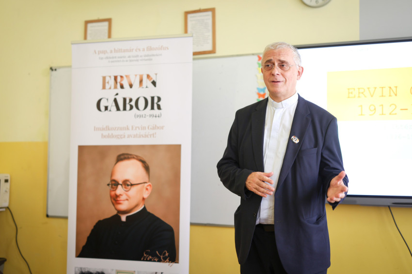 Kránitz Mihály kiemelte: a boldoggá avatási folyamat során minél szélesebb körben kell megismertetni Ervin Gábort, ennek fontos mozzanata ez a mai rendezvény is. A teológus professzor felidézte: iskolai osztályfőnöke, Makádi Margit is itt végzett, a Salvator Intézetben, tőle hallott először Ervin Gáborról, aki az ő hittanára volt. Huszonhat évvel ezelőtt történt ez, és „Margit néni” egy könyvet is ajándékozott neki, a Veni Sancte – Te Deum. Rövid szentbeszédek című, 1939-ben megjelent kötetet, amely az akkor huszonhét éves Ervin Gábor szentbeszédeit tartalmazza.