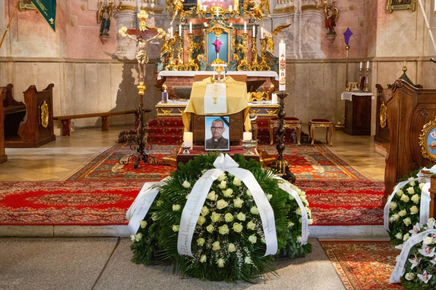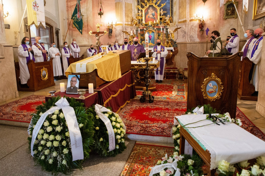 A súlyos betegségben, szentségekkel megerősítve, fiatalon elhunyt Kiss Csaba solymári plébános atyától végső búcsút vett családja, paptársai, barátai és a plébániához tartozó hívek.