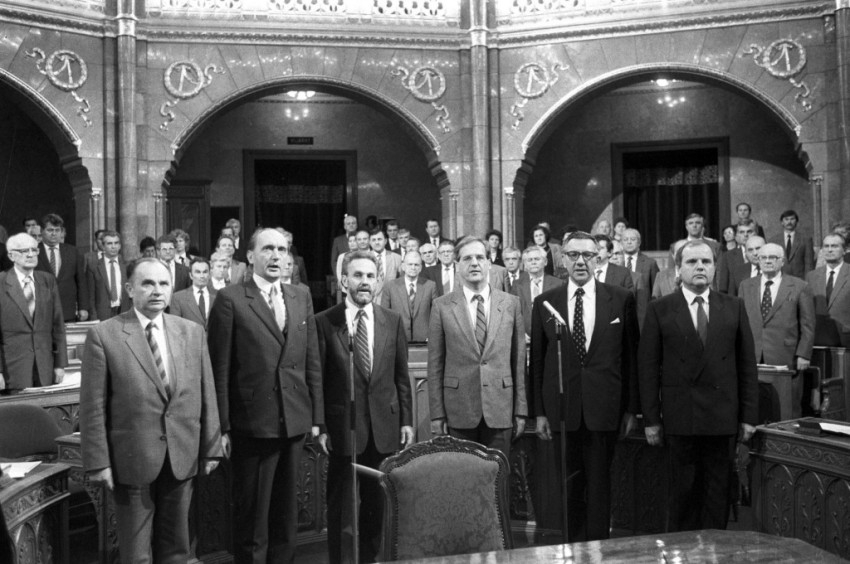 Az alkotmánybíróság első öt tagjának eskütétele 1989-ben (Kilényi Géza balról a második)