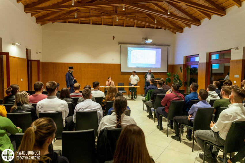 A tanévnyitó a közösségi házban folytatódott, ahol hasznos tudnivalókat osztott meg a fiatalokkal a diákotthon új igazgatója, Mező-Halász Krisztina és lelki igazgatója, Kapin István atya.