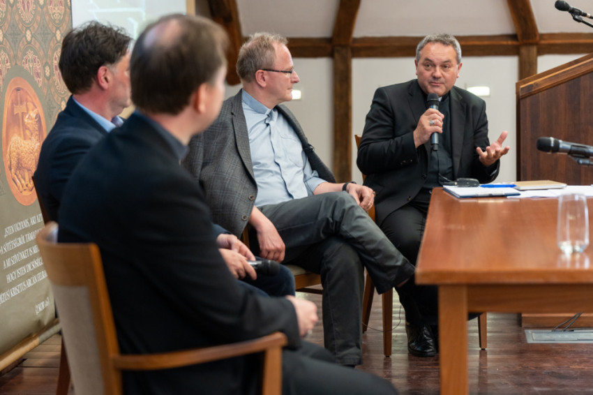 Az előadást követően kerekasztal-beszélgetést tartottak, Mohos Gábor püspök, Felföldi László pécsi megyéspüspök, Forrai Tamás SJ egyetemi lelkész, valamint Görföl Tibor teológus, a beszélgetés moderátora és a program házigazdája részvételével.