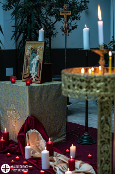 Az aula díszítéséről Rakaczkiné Vadász Viktória, a Hajdúdorogi Főegyházmegyei Pasztorációs Iroda főmunkatársa gondoskodott: ikonokkal, gyertyákkal, drapériával tette hangulatossá a helyszínt.