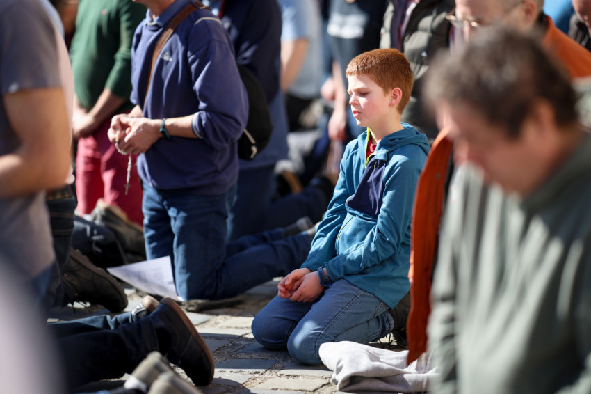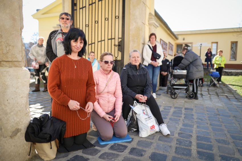 Márianosztrán már hagyománnyá vált, hogy minden hónap első szombatján férfiak gyűlnek össze a bazilika előtt, hogy térdepelve, közösen imádkozzák a rózsafüzért. Az alázatos, mégis határozott tanúságtétel tavaly májusban vette kezdetét, és azóta is töretlen erővel hívják közös bűnbánatra és imádkozásra a családfőket, fiatalokat és idősebbeket egyaránt. Ezúttal közel kétszáz férfi imája és éneke töltötte be a Pálosok terét.