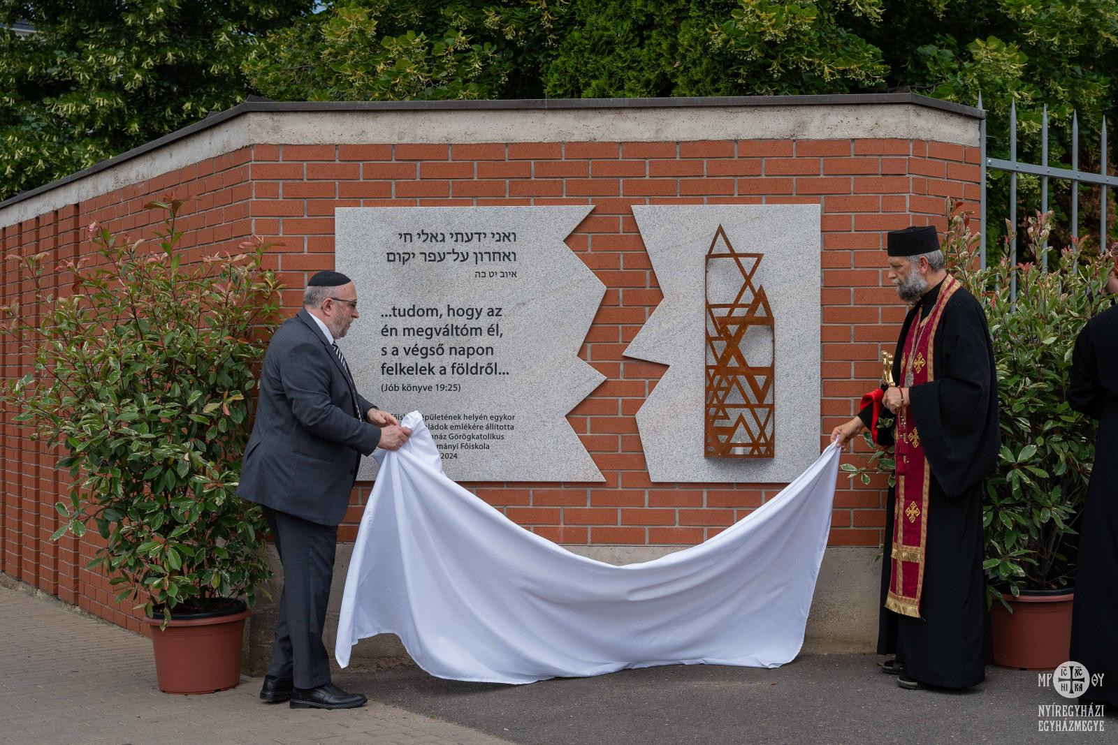 A táblát a holokauszt magyarországi emléknapján Kocsis Fülöp görögkatolikus érsek-metropolita és Frölich Róbert országos főrabbi közösen leplezték le, majd a hajdúdorogi érsek meghintette szenteltvízzel. „Imádságban emlékezünk – kezdte beszédét a szertartás során Kocsis Fülöp érsek, ha nem imádságban emlékeznénk, akkor mindaz, ami fájó, újra fáj.