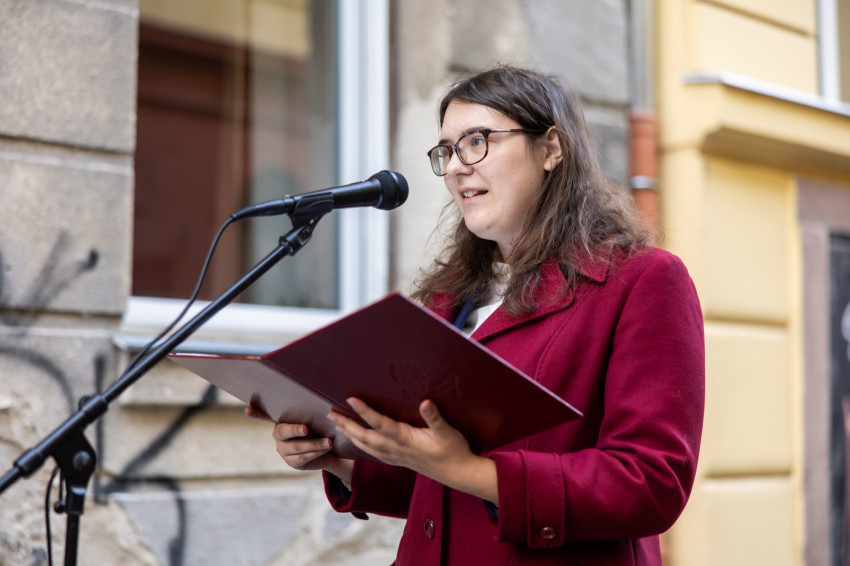 Pummer Dóra egyetemista diák Szenes Hanna verseiből szavalt és Mindszenty bíboros emlékirataiból idézett megható részeket: