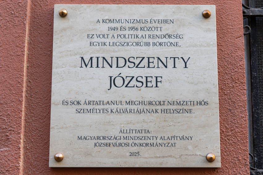 Mindszenty József új emléktáblája „a kommunizmus éveiben sok ártatlanul meghurcolt nemzeti hős” emléke előtt tiszteleg személyes kálváriájuk helyszínén;