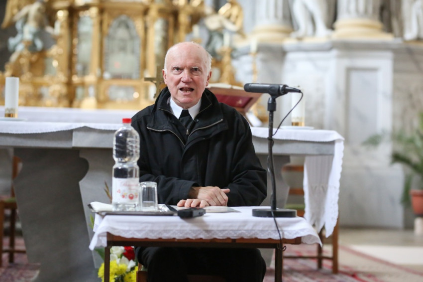 A bevezető, a témára rálátást adó előadást Bajzáth Ferenc, Óbuda-Hegyvidék Szentháromság-plébániájának kormányzója tartotta. Mit jelent engesztelőnek lenni, hogyan válhatok én magam engesztelővé? – ezt mutatta be saját életéből, papi szolgálatából kiindulva. Hangsúlyozta, Isten akar kiengesztelődni velünk, emberekkel, nekünk benne a gyöngédség és irgalom Istenét kell látnunk, és tudnunk kell, mélységesen rászorulunk irgalmára.