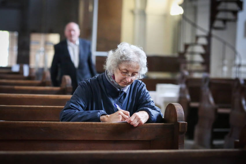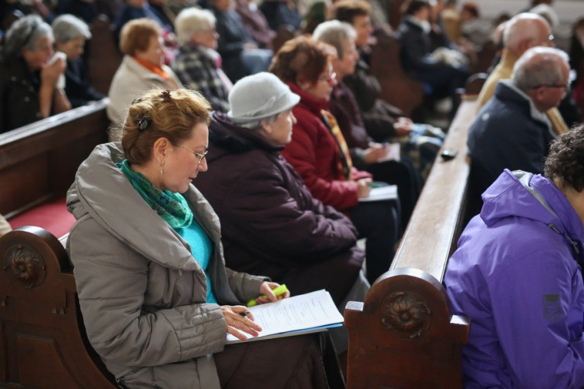 A délután az elmúlt tíz év történetét összefoglaló, vetítéssel kísért beszámolóval kezdődött. „Szentlélek jöjj, lobogó láng” – hangzott a templomban. Idős asszonyok, férfiak követték a gitáros éneket. Ugyanúgy otthon voltak a gitáros énekekben, mint évszázados imáinkban.