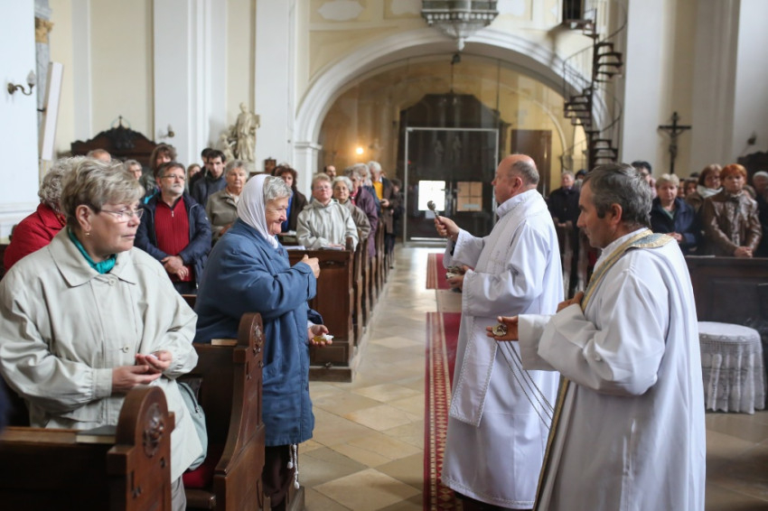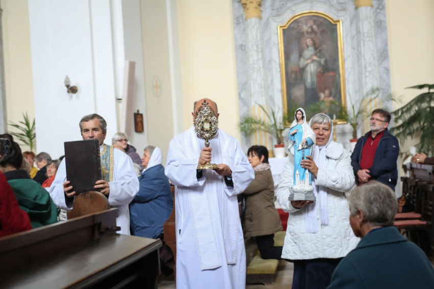 „Jézus érints meg, gyógyíts meg” – énekelték a hívek, miközben Bocsa atya áldást adva körbevitte a monstranciában az Oltáriszentséget.