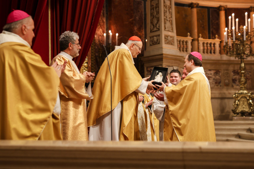 Mohos Gábor hozzátette: az oltár közepén álló Szent István-szobor kicsinyített mását ajándékként szeretnék átadni Erdő Péter bíborosnak, hogy amikor ránéz, a bazilika közösségére gondoljon – azokra, akik nap mint nap imádsággal hordozzák őt, és azokra az értékekre, amelyeket ez a székesegyház évszázadok óta megőriz.