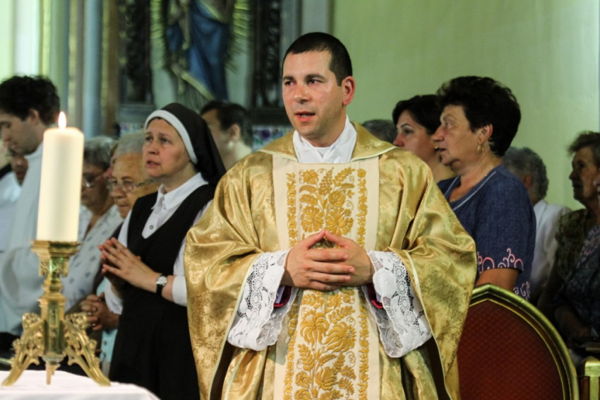 A búcsúi szertartás elején, a szentmise előtt a papnövendékek az ünnep vesperását énekelték a hívekkel közösen.
