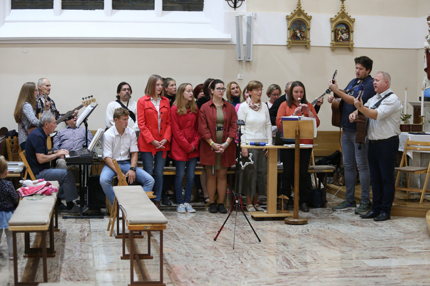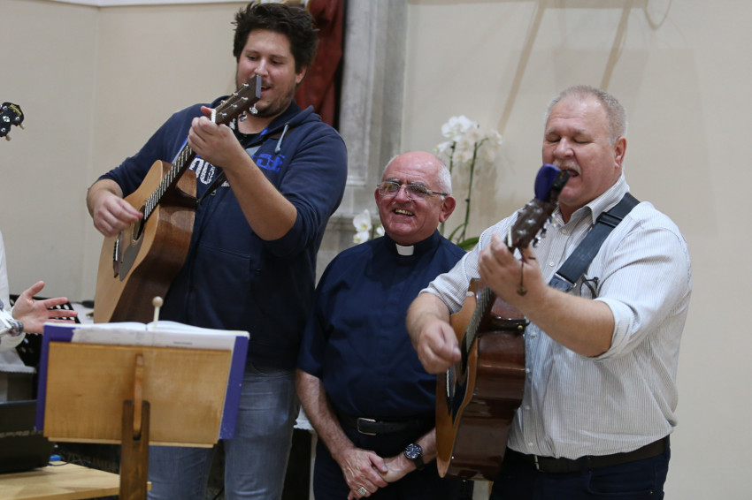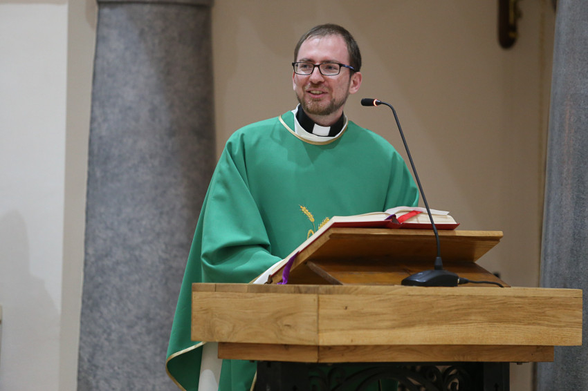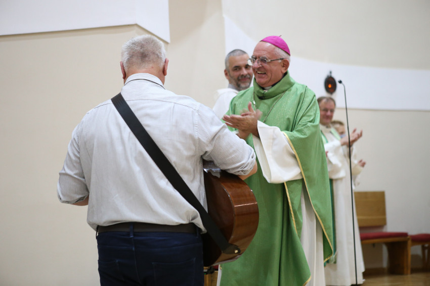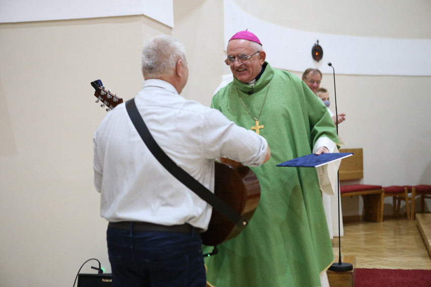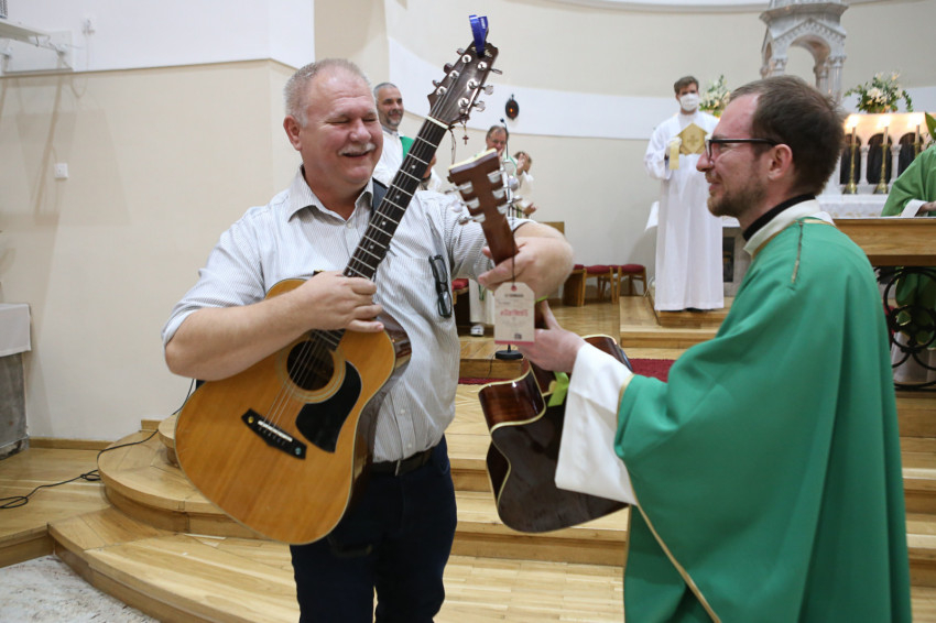 A szentmise elején Tomanek Ferenc plébános mondott köszönetet a szolgálatért, majd a plébánia nevében egy gitárral ajándékozta meg a zenei szolgálattevőt.