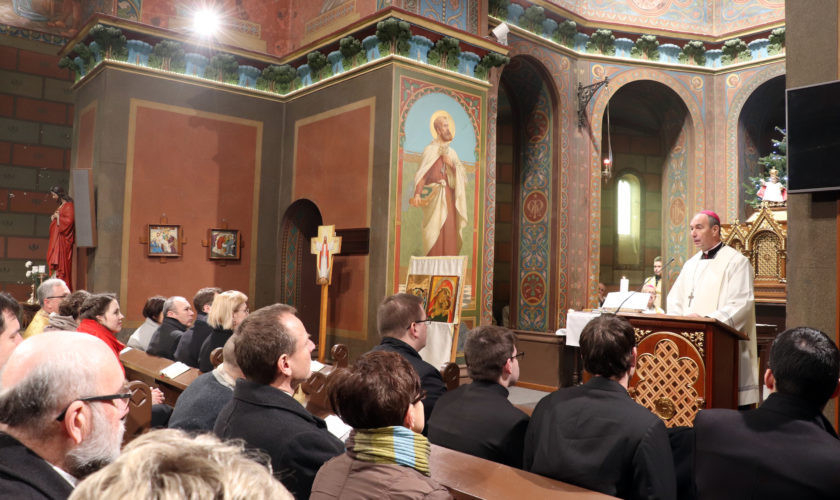 Az ünnepi liturgia szónoka Udvardy György érsek volt, aki a papság küldetéséről beszélt prédikációjában. Kiemelte, a karácsonyi ünnepkör egészen sajátos módon engedi a papság feladatát értelmezni, mivel egészen közel visz szolgálatuk lényegéhez. Karácsonykor és vízkereszt ünnepe előtt is látjuk, hogy föltárulkozik előttünk az Isten teljessége. Meghívja a papot: ugyanaz legyél, aki én vagyok.
