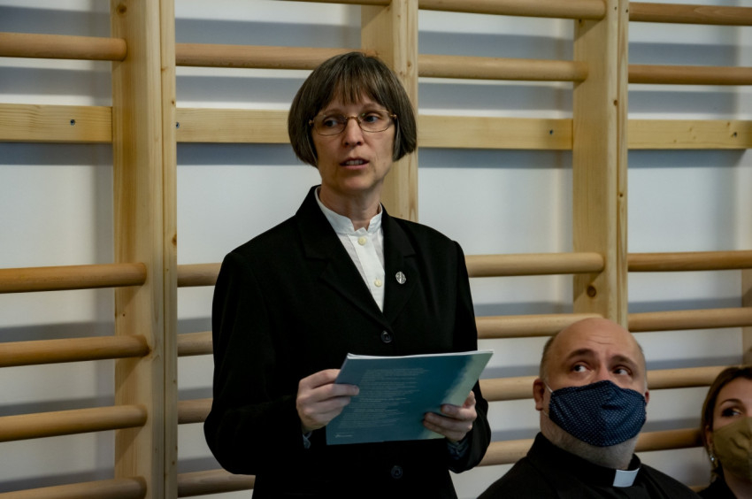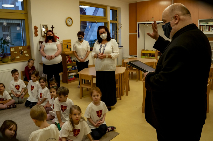 Lobmayer M. Judit nővér az adventi várakozáshoz hasonlította az építkezés időszakát, megköszönte a munkatársaknak és a gyerekeknek, hogy az átmeneti körülmények között is helyt álltak. Elmondta: vízkereszt ünnepén a háromkirályok látogatásáról emlékezünk meg, akik ajándékot: aranyat, tömjént, mirhát hoztak az újszülött Megváltónak. Hasonlóan a Kisjézushoz, ez az „újszülött”: az újonnan átadott óvoda is sokak ajándékának örülhet. Az arany: a volt és jelenlegi önkormányzati vezetés hozzájárulása, támogatása. A mirha: az a sok munka és előkészület, mellyel az óvoda dolgozói és az önkéntes munkát vállaló szülők lehetővé tették, hogy a gyerekeket otthonos környezet fogadja. A tömjén az imádságot jelképezi: Judit nővér a Boldogasszony Iskolanővérek nevében és a rendalapító, Gerhardinger Boldog Terézia anya közbenjárására Isten áldását kérte az óvodaépületre és azokra, akik itt nevelődnek és nevelnek. Negyedik ajándékként pedig, a fenntartó részéről, a csoportszobák számára egy-egy laptopot nyújtott át.