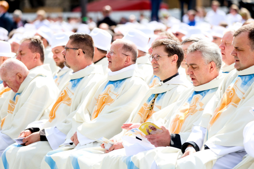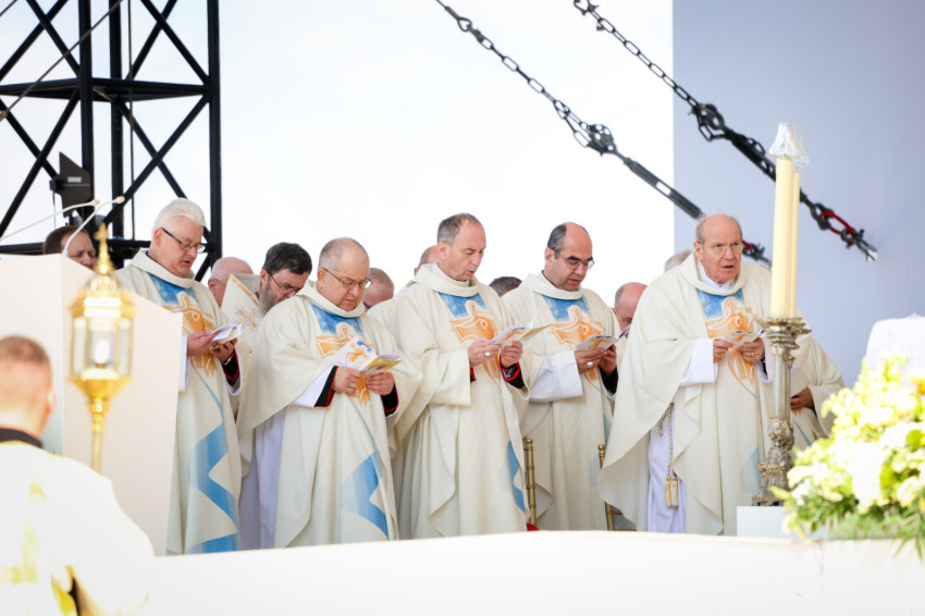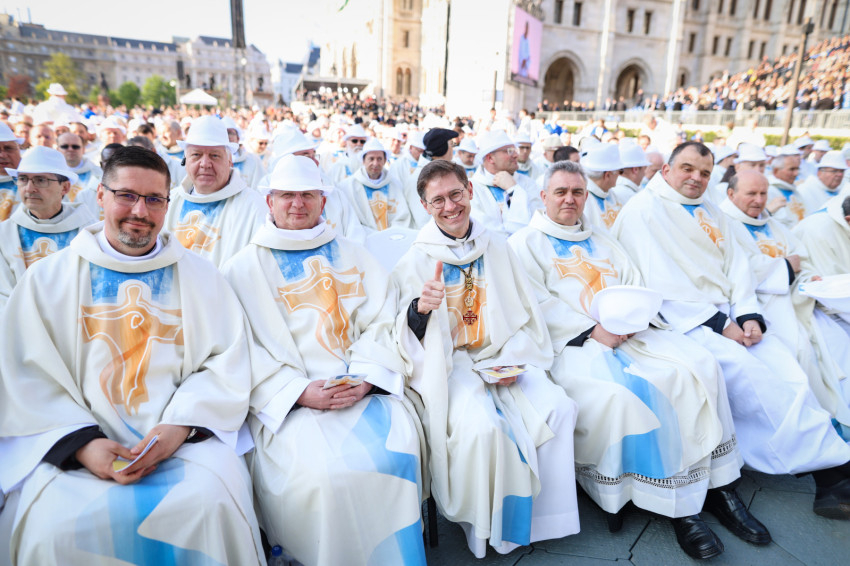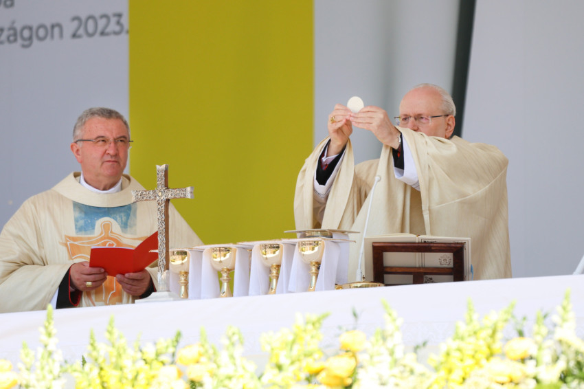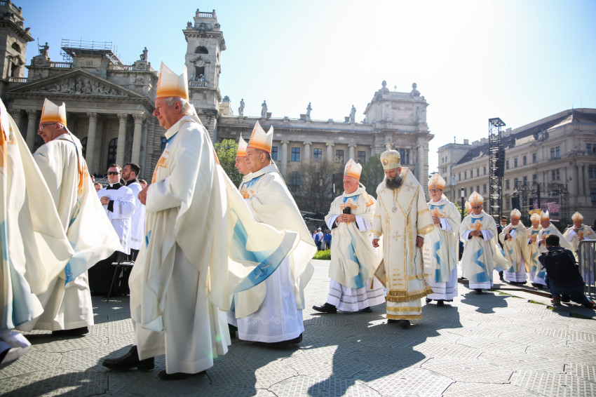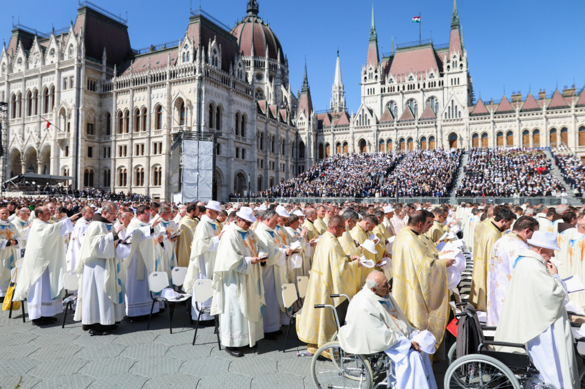 A szentmisén koncelebrált Erdő Péter bíboros mellett Veres András győri megyéspüspök, a Magyar Katolikus Püspöki Konferencia (MKPK) elnöke, Kocsis Fülöp hajdúdorogi érsek-metropolita, az MKPK tagjai, Pietro Parolin vatikáni bíboros államtitkár; Paul Richard Gallagher érsek, a szentszéki államközi kapcsolatok titkára, a vatikáni delegáció tagjai; több mint ötven püspök és hétszázötven pap a határon túlról és távolabbról.