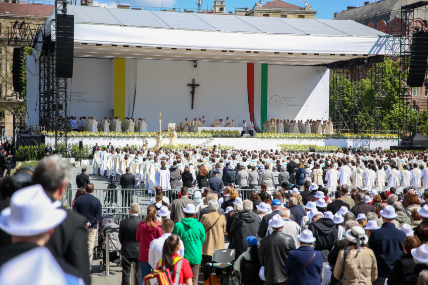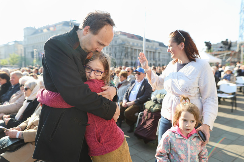 Szeretteim, Jézus, a Jó Pásztor nevünkön szólít minket, és végtelen gyengédséggel gondoskodik rólunk. Ő a kapu, és aki őrajta keresztül lép be, annak örök élete van: ő a mi jövőnk, a „bőséges élet jövője” (vö. Jn 10,10). Ezért soha ne csüggedjünk el, soha ne engedjük, hogy megfosszanak minket attól az örömtől és békességtől, amelyet ő adott nekünk, ne zárkózzunk be a problémákba vagy a fásultságba! Hagyjuk, hogy a mi Pásztorunk kísérjen minket: vele az új élet fényében ragyogjon az életünk, a családjaink, keresztény közösségeink és egész Magyarország!