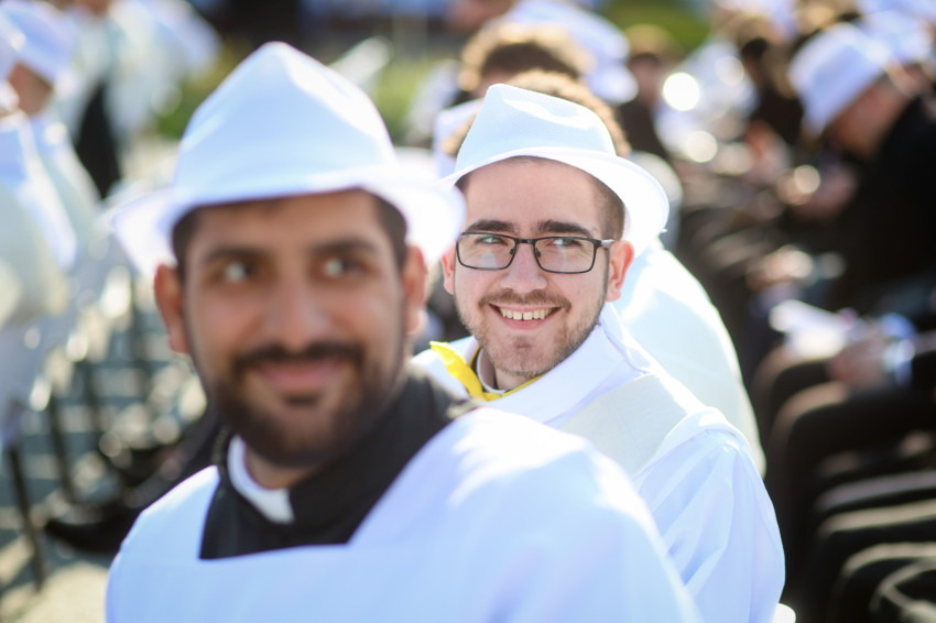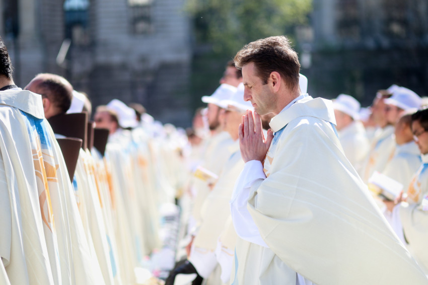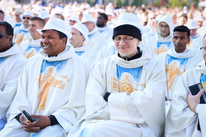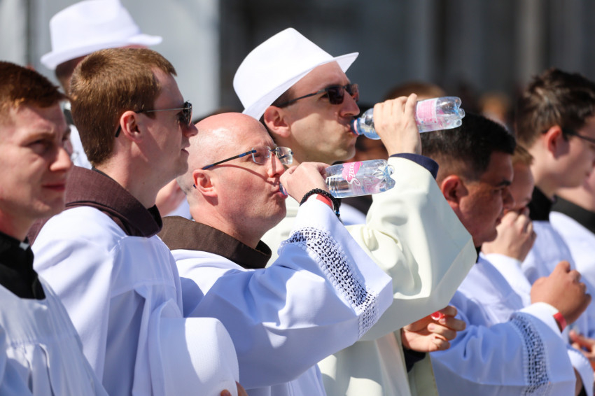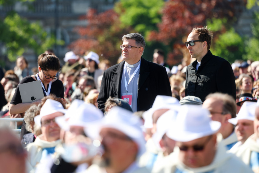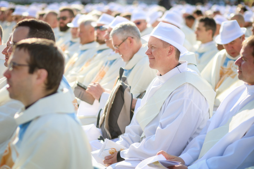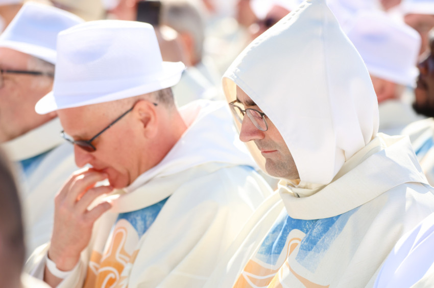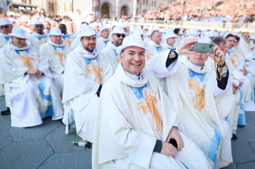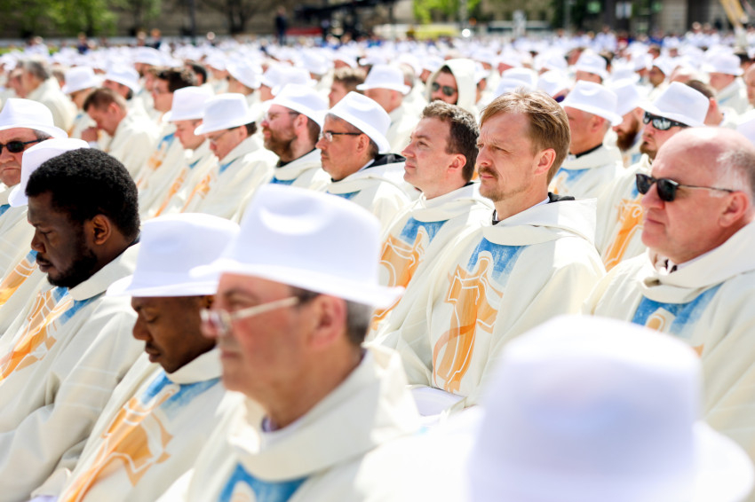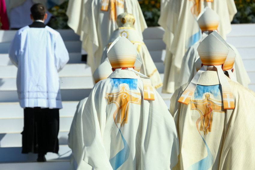 Testvérek, ahogy ma reggel itt vagyunk, érezzük meg annak örömét, hogy Isten szent népe vagyunk: mindannyian az ő meghívásából születünk; ő gyűjtött egybe minket, és ezért vagyunk az ő népe, az ő nyája, az ő Egyháza. Azért hívott itt egybe minket, különbözzünk bár egymástól és tartozzunk bár különböző közösségekhez, hogy szeretetének nagysága mégis egyetlen ölelésben egyesítsen minket. Olyan szép, ahogy most együtt vagyunk: püspökök és papok, szerzetesek és világi hívők; olyan jó, hogy ezt az örömöt más keresztény felekezetek küldötteivel, a zsidó közösség vezetőivel, a civil szervezetek képviselőivel és a diplomáciai testülettel is megoszthatjuk. Ez a katolicitás: mindannyiunkat, akiket a Jó Pásztor név szerint szólított meg, arra hívott, hogy szeretetét befogadjuk és továbbadjuk, hogy az ő nyáját befogadóvá tegyük és sohasem kirekesztővé. És ezért mindannyian arra kaptunk meghívást, hogy ápoljuk a testvériség és az együttműködés kötelékeit, megoszlás nélkül,