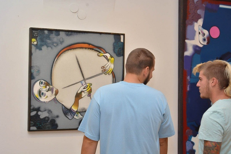 A programot a B. Farkas Tamás és Kernács Gabriella művészettörténészek által 1998-ban készített film részlete nyitotta meg, melyben az érdeklődők a Somoskőújfaluban élő és dolgozó művész műtermébe tekinthettek be. A film kísérőzenéjének szaxofondallamát Dresch Mihály, a magyar jazzélet elismert előadója folytatta a vetítés után.