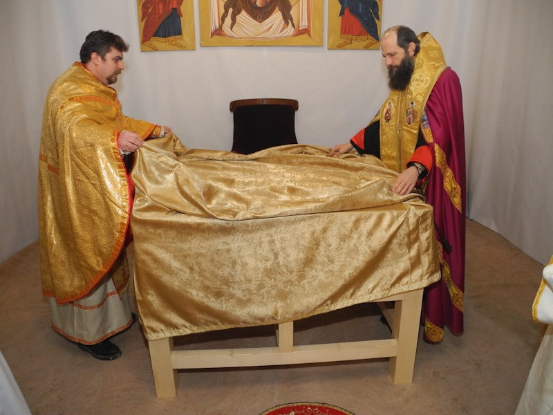 2012. június 11-én kezdődött meg a templom építése, az első építési ütem. 2013. február 3-án helyezte el Kocsis Fülöp érsek-metropolita az altemplom oltárára az antimenziont (négyszögletes liturgikus vászonkendő az Úr Jézus keresztről való levételének vagy sírbatételének képével – a szerk.), így hivatalosan is az egyházközségi liturgiák helye lett az épülő templom alsó szintje.