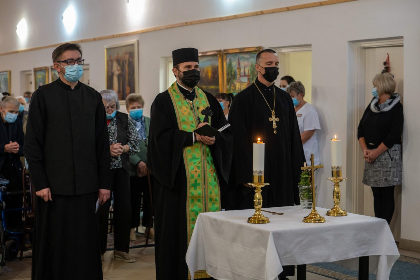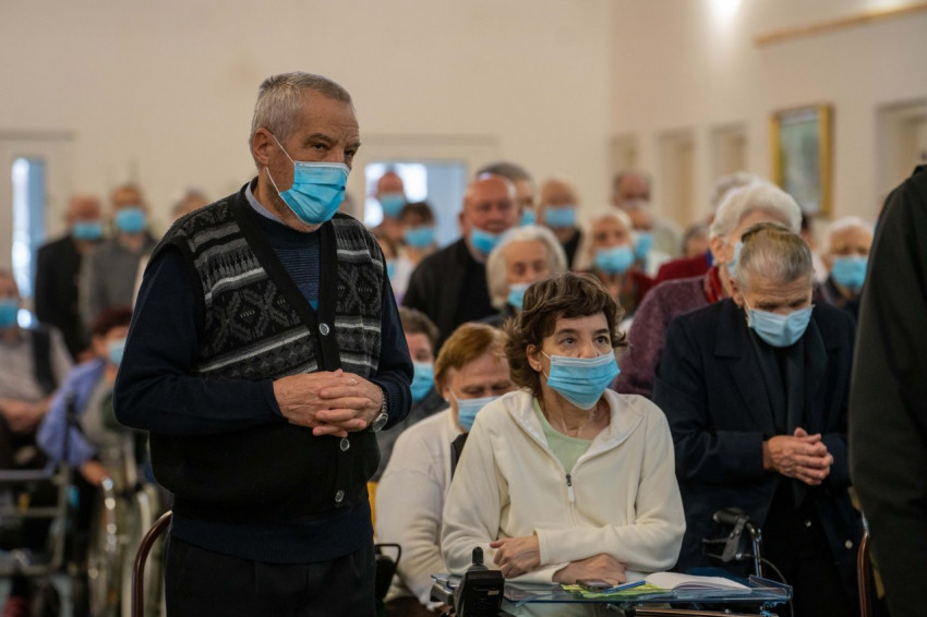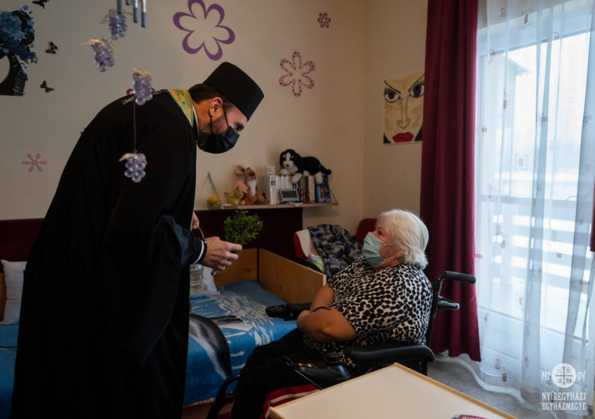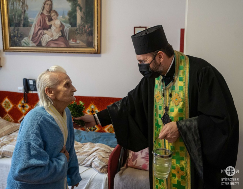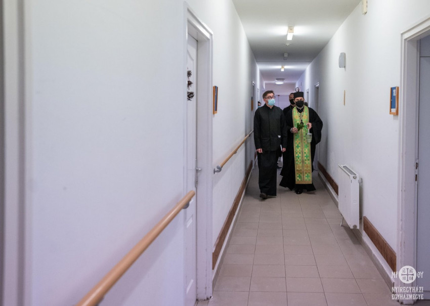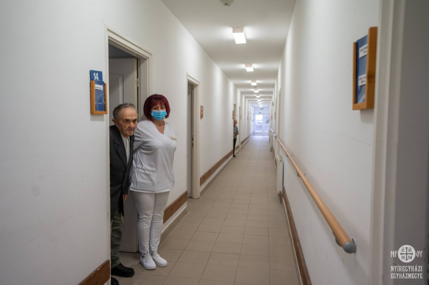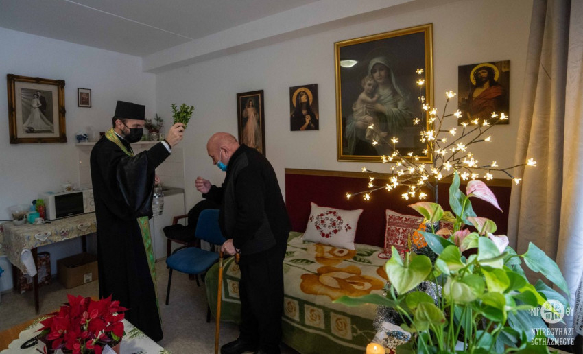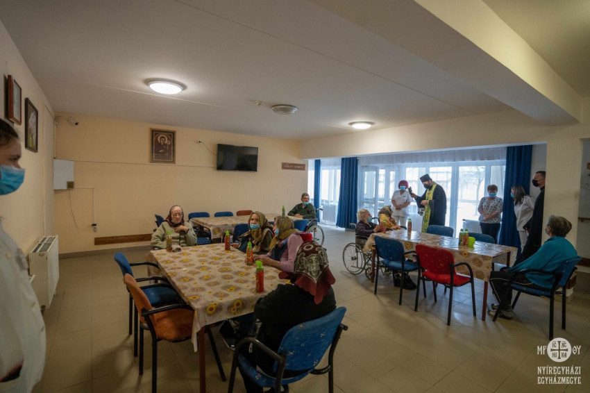 A kilencvennégy lakó mindegyike és minden gondozó és munkatárs is részesült a főpásztor áldásából, s egy-egy kedves, dicsérő szó, egy mosoly is érkezett a szentelt vízzel Szocska Ábel püspöktől, aki fiatal szerzetesként és papként is szolgált már több ízben a szeretetotthonban.