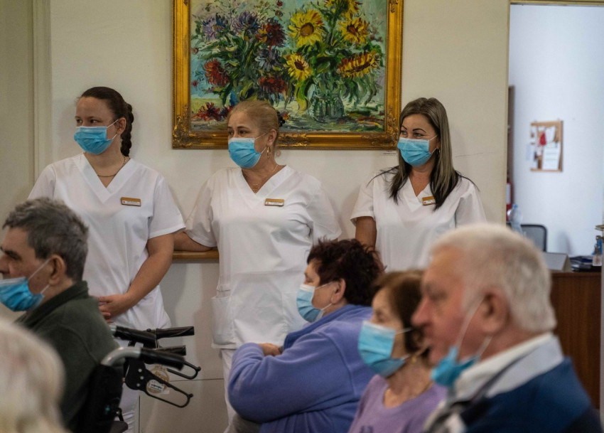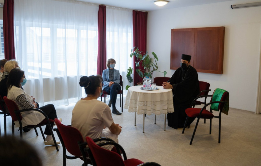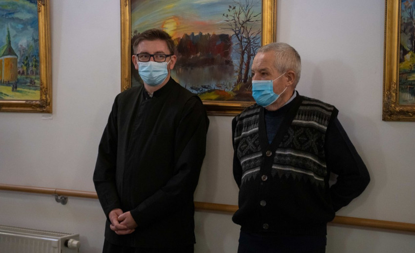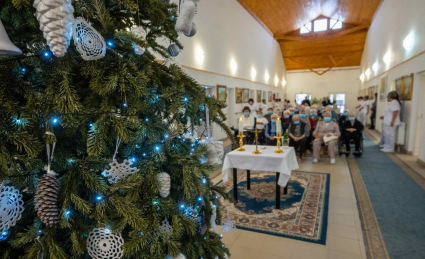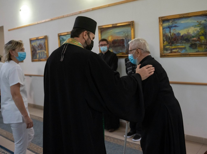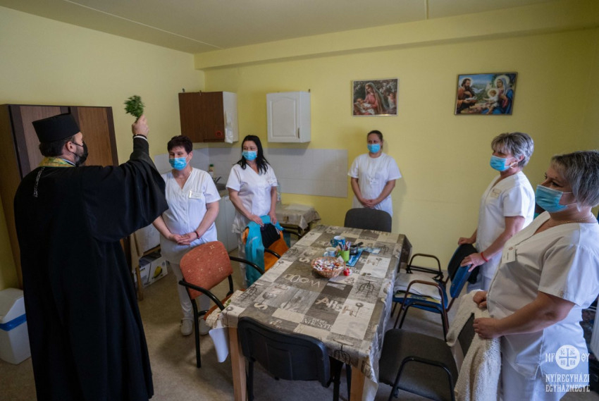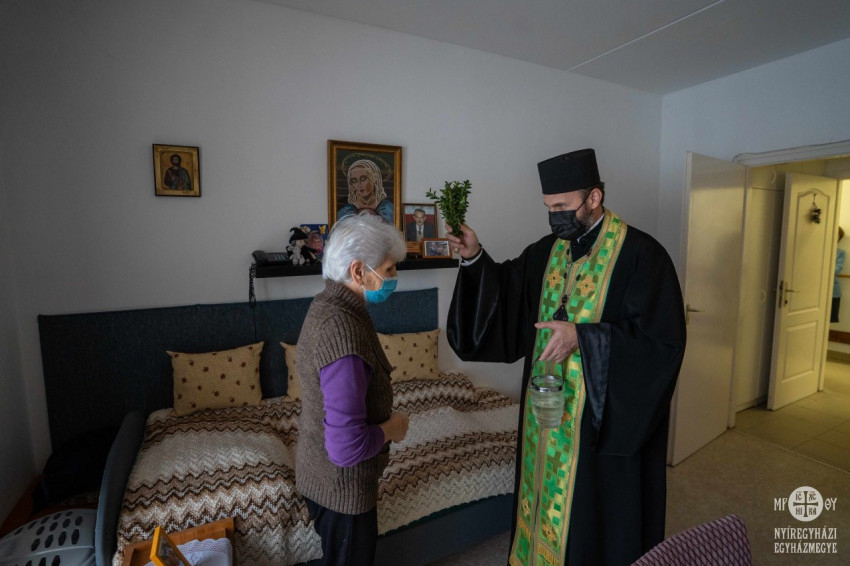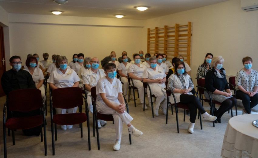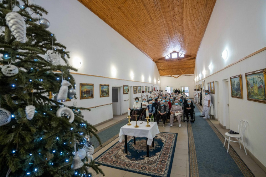 A kilencvennégy lakó mindegyike és minden gondozó és munkatárs is részesült a főpásztor áldásából, s egy-egy kedves, dicsérő szó, egy mosoly is érkezett a szentelt vízzel Szocska Ábel püspöktől, aki fiatal szerzetesként és papként is szolgált már több ízben a szeretetotthonban.